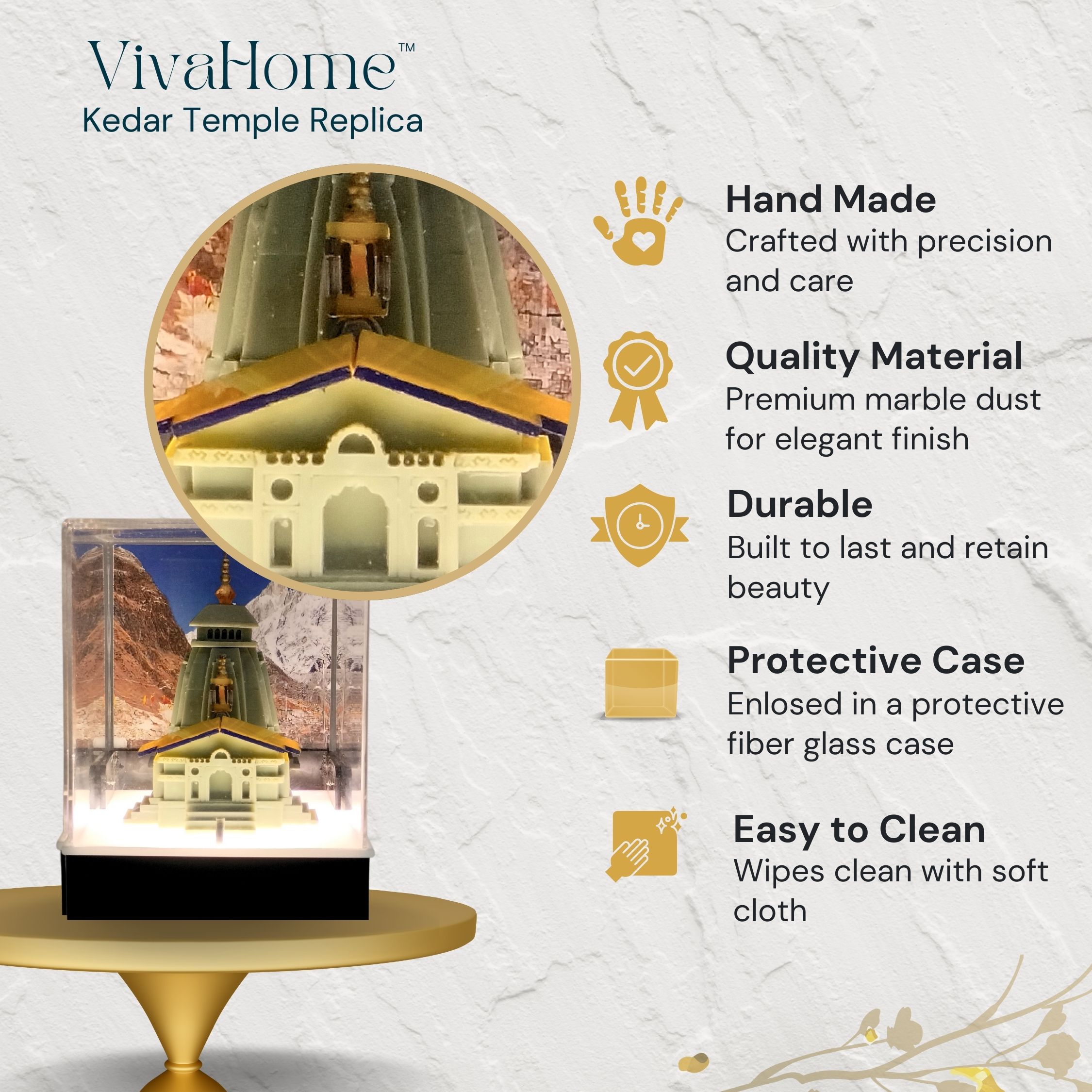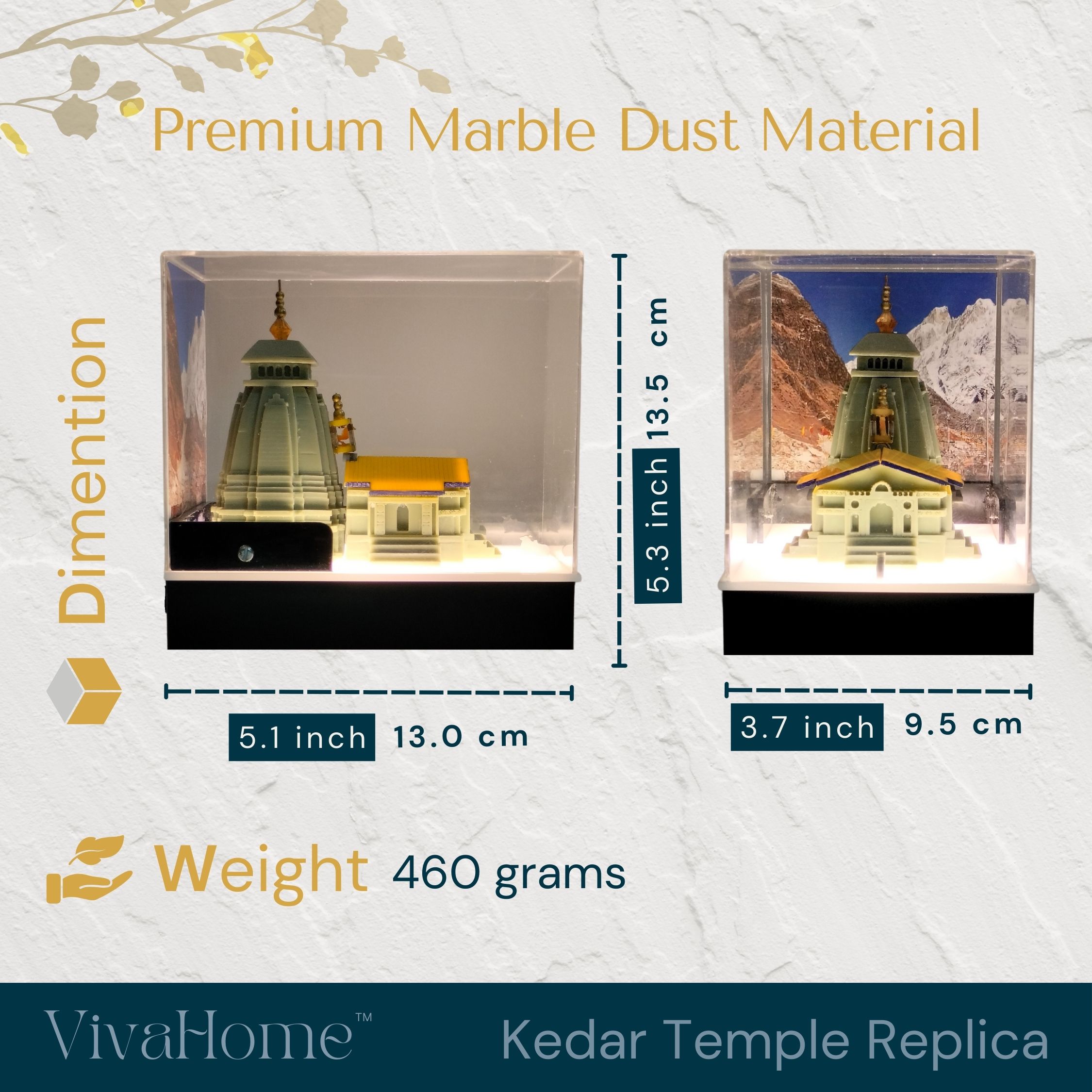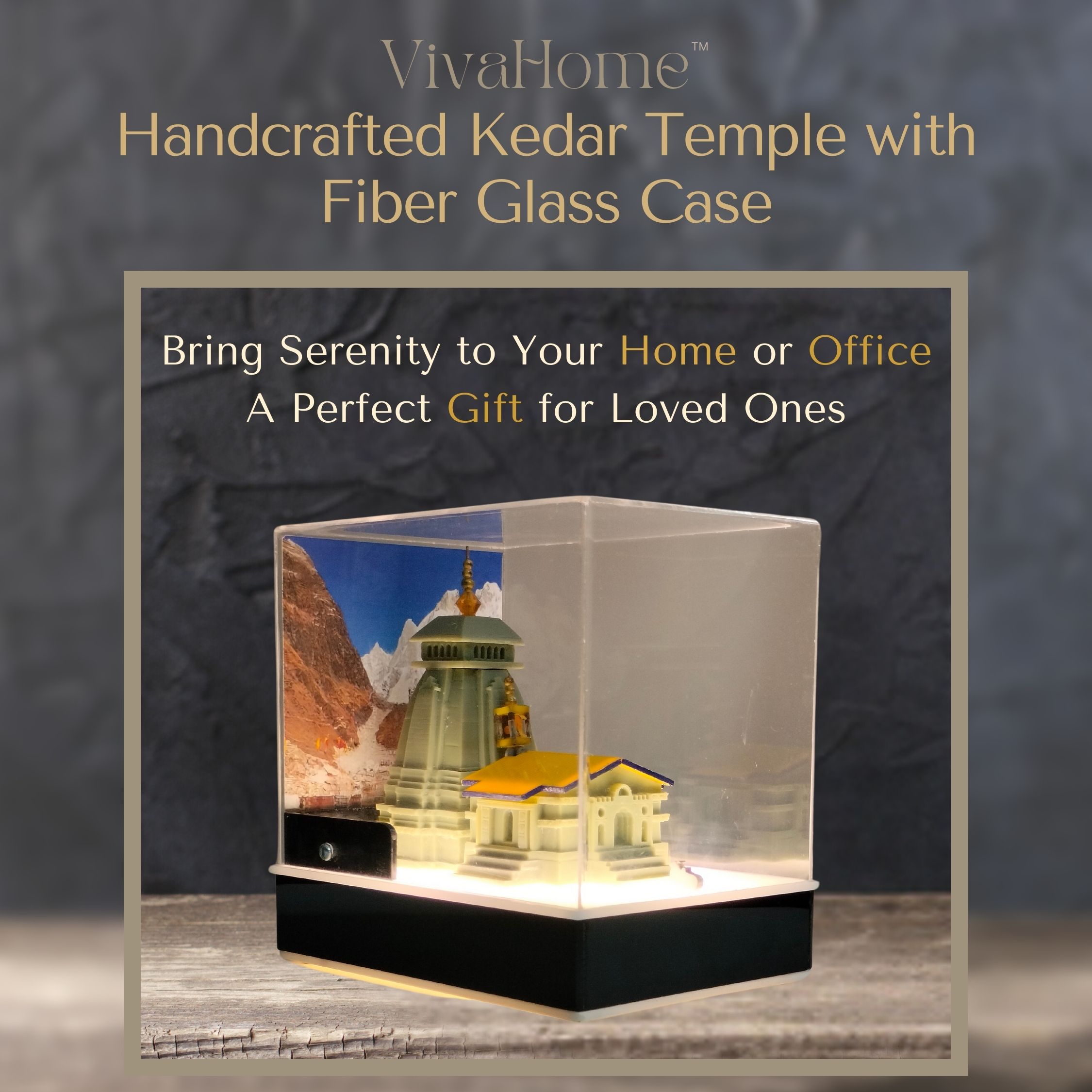 Handcrafted Polystone Kedar Temple combines tradition and modernity in a stunning design. Made from durable marble dust with fine detailing, it is housed in a protective fiberglass case. Compact at 13.5 x 9.5 x 13.0 cm (5.3 x 3.7 x 5.1 inches) and weighing 460 grams, it fits perfectly in living rooms, halls, pooja spaces, or offices.