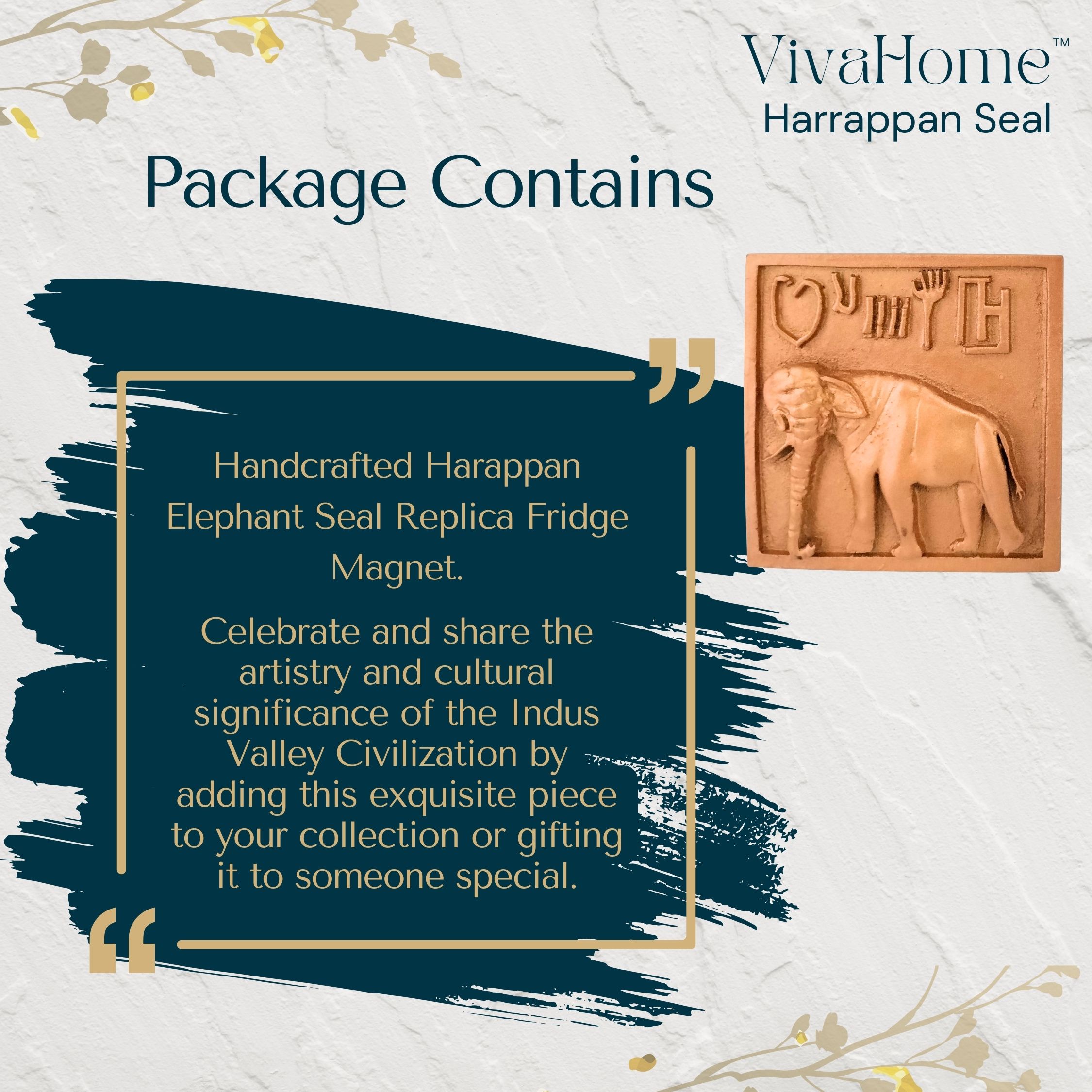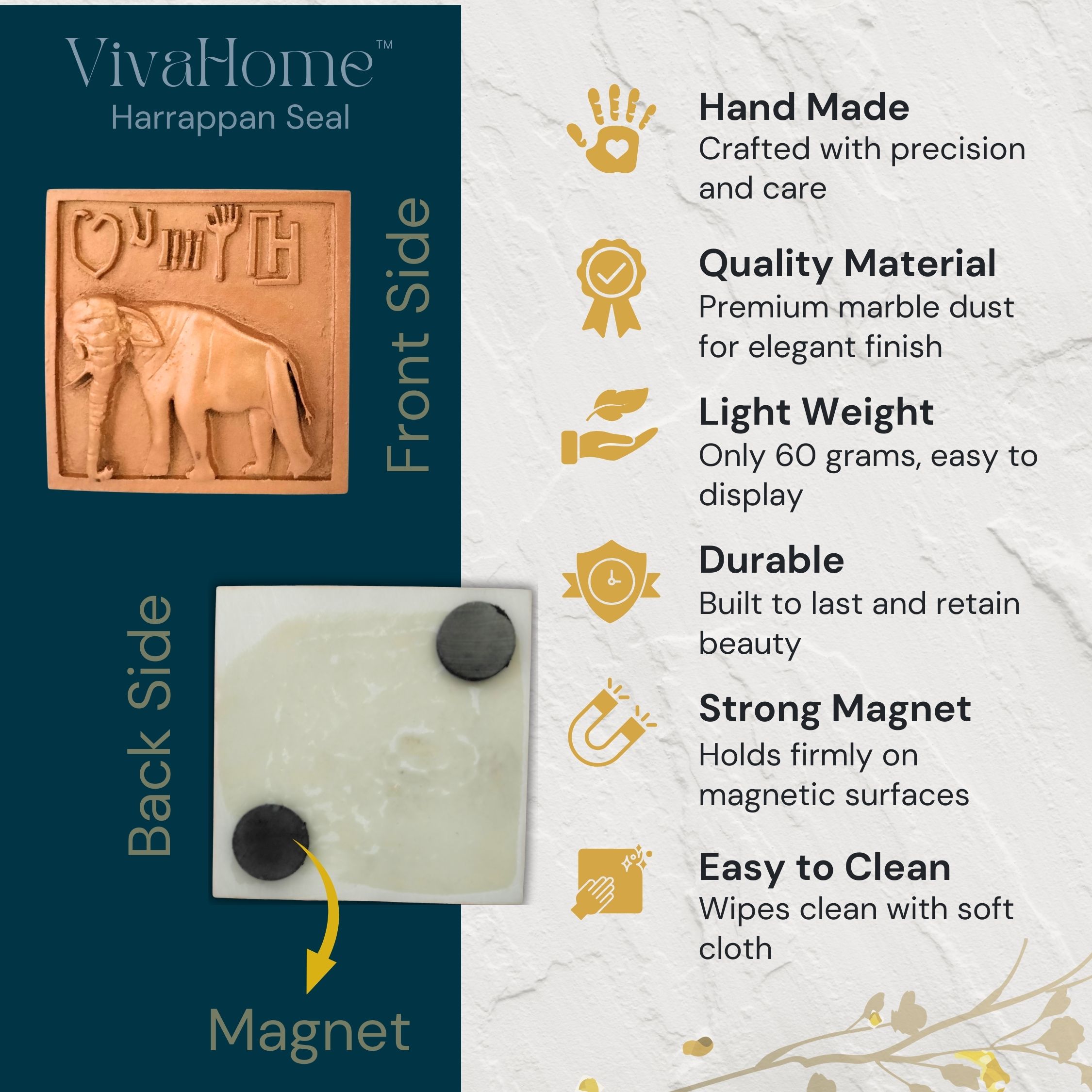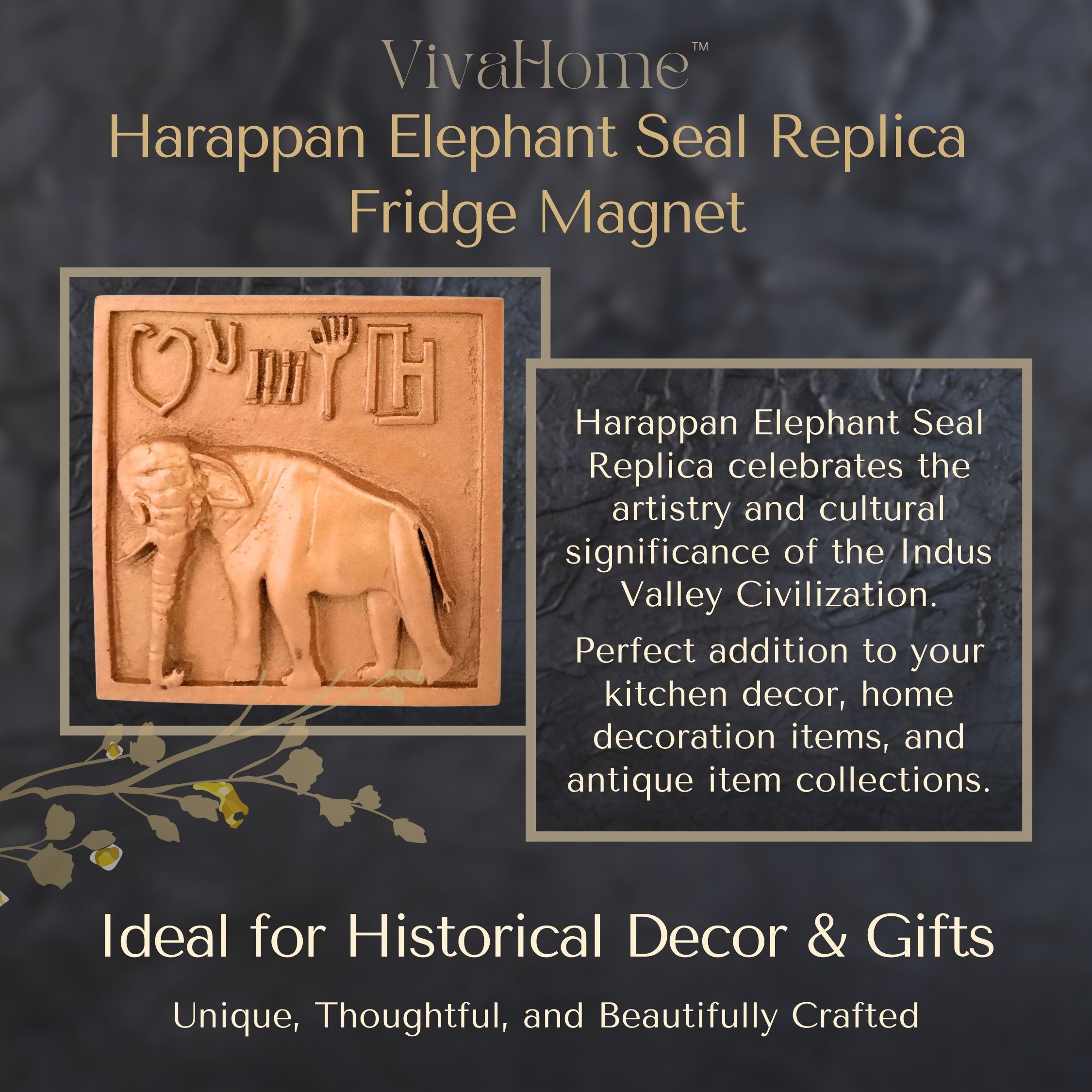 VivaHome Handcrafted Fridge Magnet (Pack of 1) – Harappan Elephant Seal Replica, Antique Marble Dust Kitchen Decor, Unique Gifts & Collectible Antique Items.
